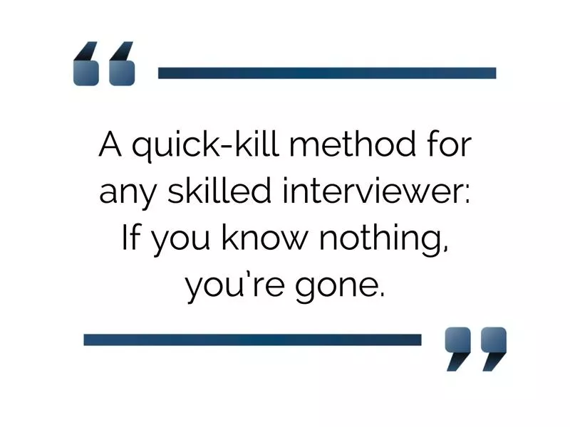 This is a quick-kill method for any skilled interviewer: If you know nothing, you’re gone.