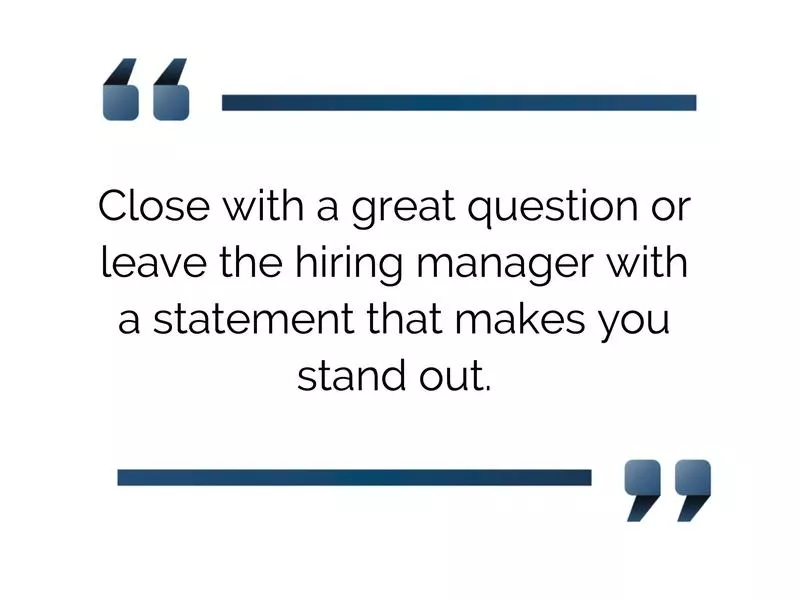 Instead, close the interview with a great question or leave the hiring manager with a statement that makes you stand out.
