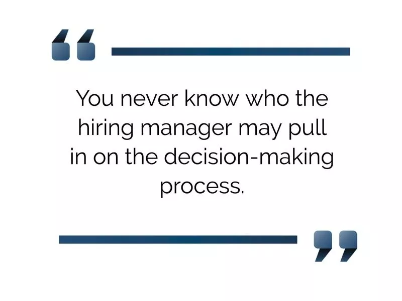 This point is massively important because you just never know who the hiring manager may pull in on the decision-making process. I have seen many managers ask the receptionist how the interviewee acted in the waiting area.