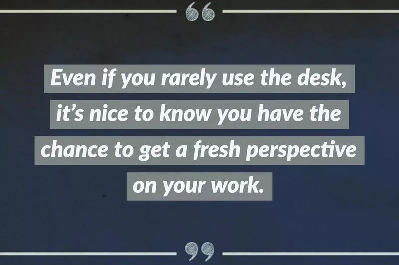 Many places, too, offer ergonomic keyboard accessories so you can avoid carpal tunnel, or just tired wrists and hands after a long day of typing. Even if you rarely use the desk, it’s nice to know you have the chance to change it up and get a fresh perspective on your work.