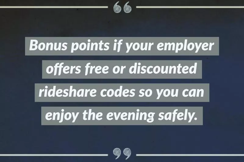Bonus points if your employer offers free or discounted rideshare codes so you can rest easy that you can enjoy the evening safely.