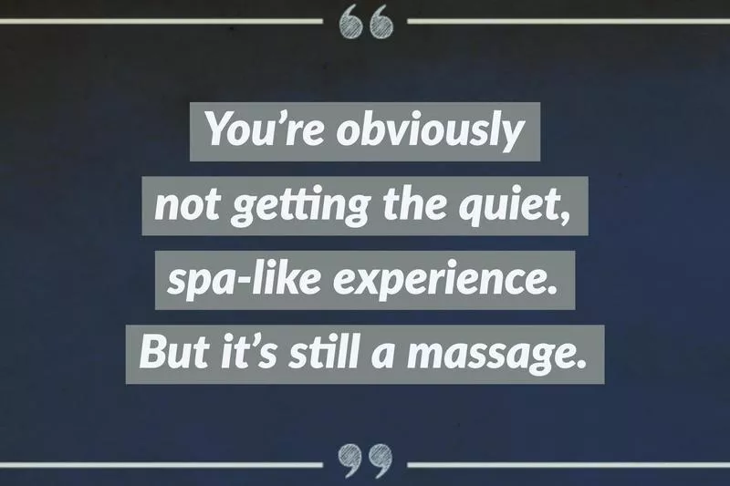 Unlike a regular massage, you’re obviously not getting the quiet, spa-like experience. But it’s still a massage. And massages feel really good, help quiet your mind, and relax your body. So the rest of the day you’re not only in a better mood, but you likely feel a whole lot better and will be more productive.