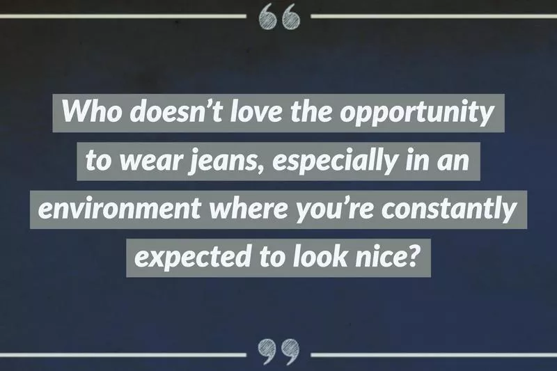 Who doesn’t love the opportunity to wear jeans, especially in an environment where you’re constantly expected to look nice? Casual Friday is a workplace staple. It allows people to relax a bit and show a little more personality in their clothing.