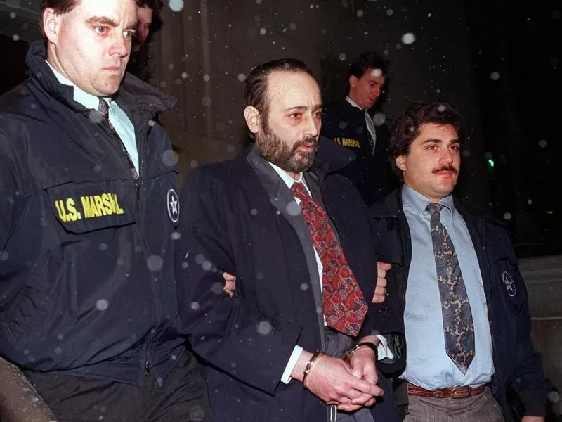 "Crazy" Eddie Antar, center, founder of the Crazy Eddie electronics store chain, was extradited from Israel in 1993. Dan Hulshizer / AP Photo