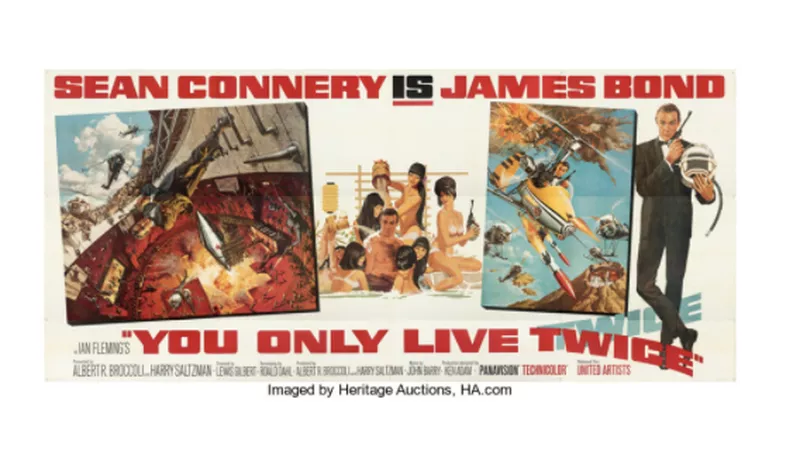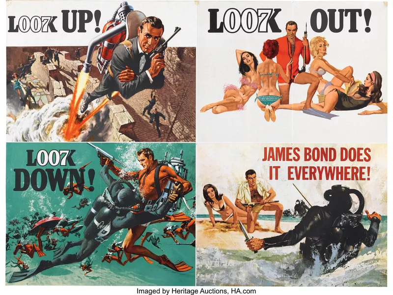 Bottom line: This poster depicts the fourth installment of the Bond franchise, starring Sean Connery, the original Bond. And while "Thunderball" isn't necessarily the best-known Bond film, this four-part poster still managed to be valued at $16,730.