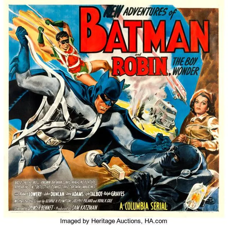 Promoting the adventures of Batman and Robin, this colorful poster generates a sense of nostalgia amongst those who remember the serial. It also appeals to comic book fans and collectors. Its mass appeal, as well as its rarity, is one of the reasons it can demand more than $18,000.