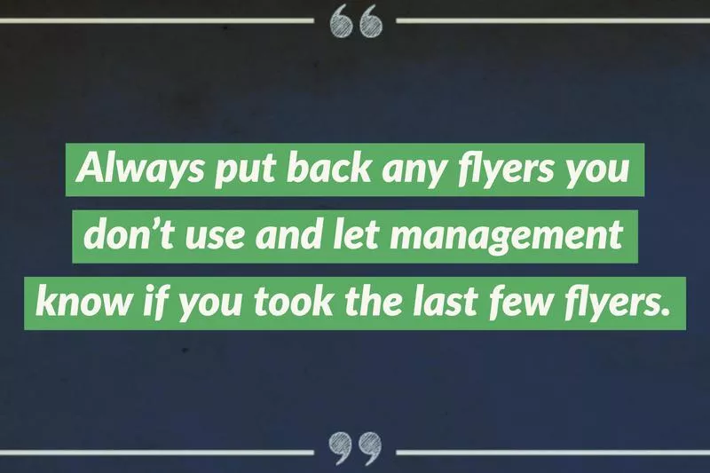 Always put back any flyers you don’t use and let management know if you took the last few flyers. This way other couponers can grab ads, too.