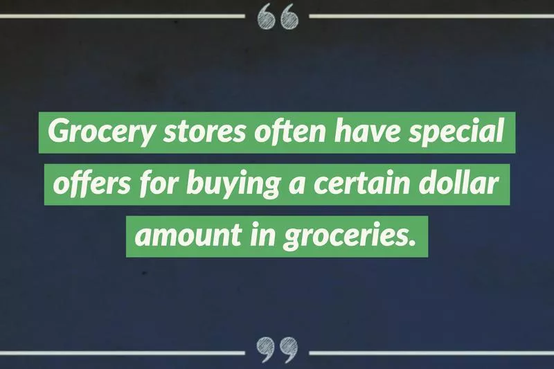 Grocery stores often have special offers for buying a certain dollar amount in groceries. Publix, my family’s preferred couponing destination, frequently offers $10 off a $50 gas card when you buy $100 or more in groceries.