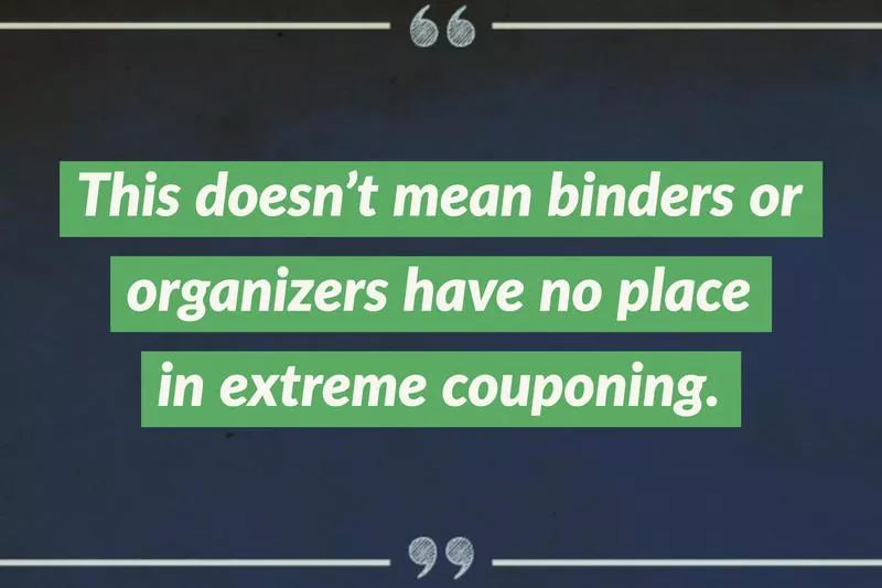 This doesn’t mean binders or organizers have no place in extreme couponing. My wife and I used a binder to separate our shopping trips. If we had multiple stores to go to or were spreading out our shopping over a few days, we would put our coupons in slots for those specific days or stores. What we never did was sift through our binder in the store or at the checkout line.