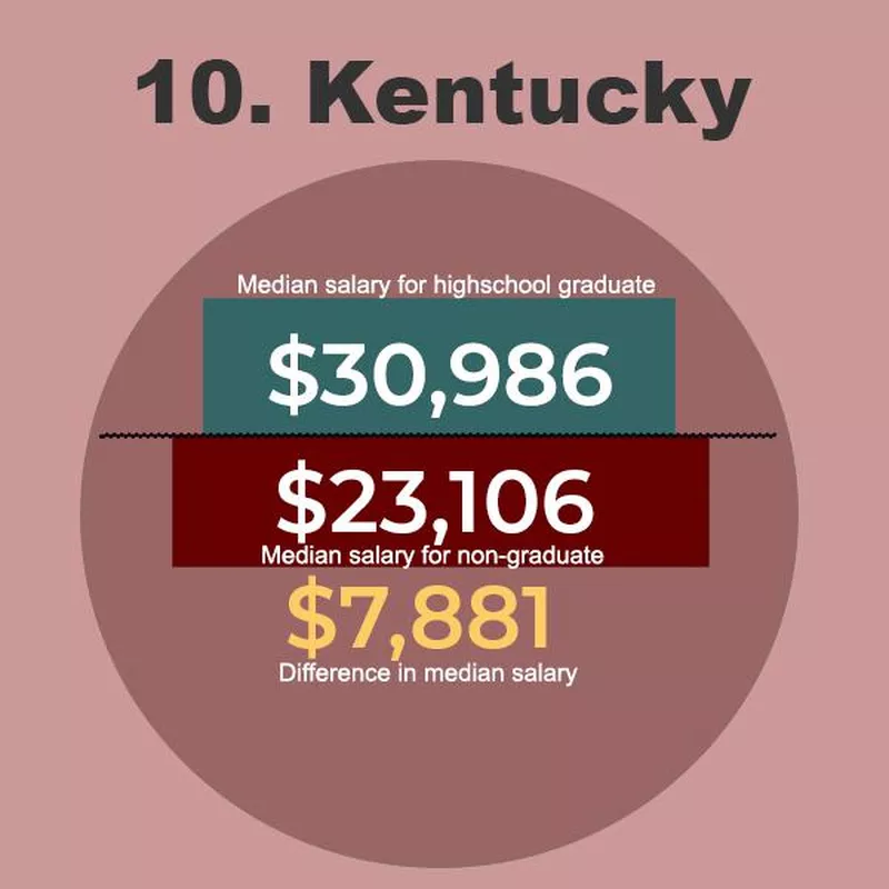 The difference between the salaries of high school graduates and non-graduates is about $6,400, which is fairly comparable to neighboring states like Missouri and Illinois.