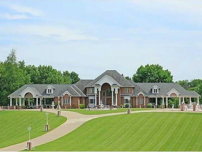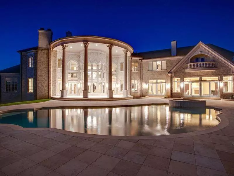 Special features: Bizarrely large estate that has an indoor swimming pool with dressing rooms, slides, waterfall features and huge plants for a jungle-like feel. Massive foyer with butterfly staircase, trophy room, indoor shooting range, indoor basketball court and elevator.