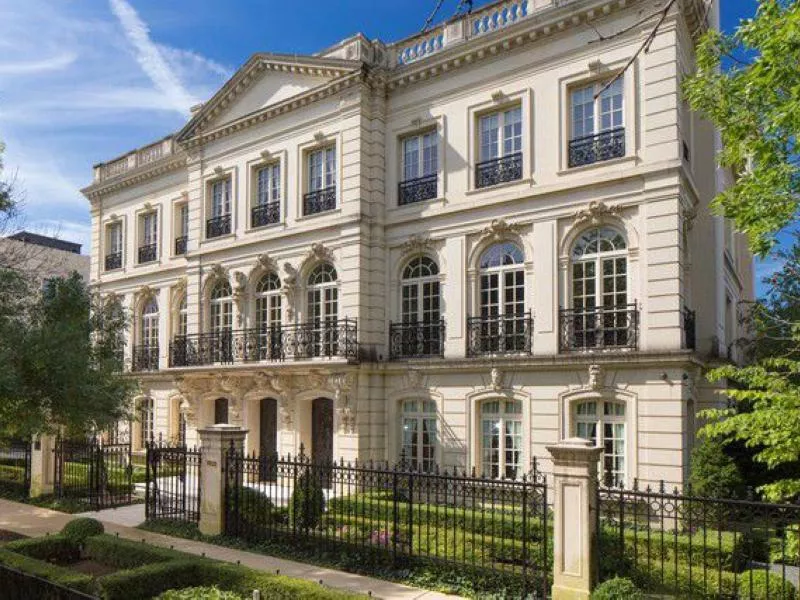 Special features: Parcel totals eight city lots, multiple fountains, reflecting pool, antique garden pavilion, grand winding staircase, massive study, classy hotel-style bar.