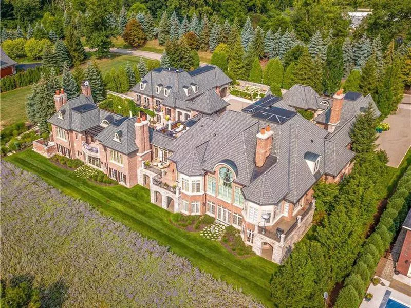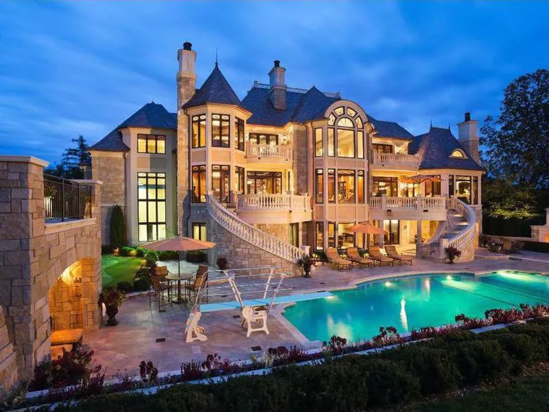 Special features: Overly opulent estate with three full kitchens, three bars, ballroom with a stage, nine fireplaces, wine cellar, steam room, exercise room, elevator and royal theater.