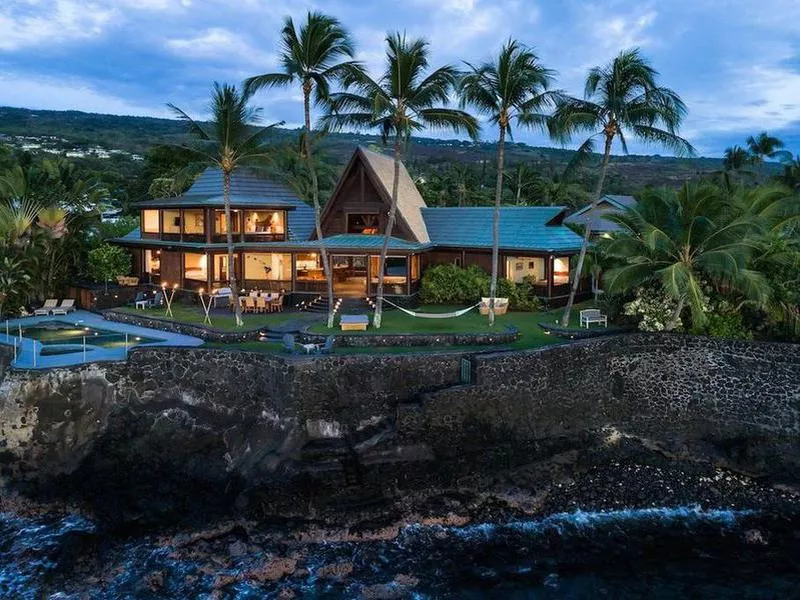 Special features: Sprawling oceanfront estate with a 7,000-square-foot main house with 49 windows and a 3,000-square-foot guest house. Includes a pavilion specially designed for parties that can accommodate 1,000-2,000 people. Also includes 24-foot ceilings and a two-story fireplace.