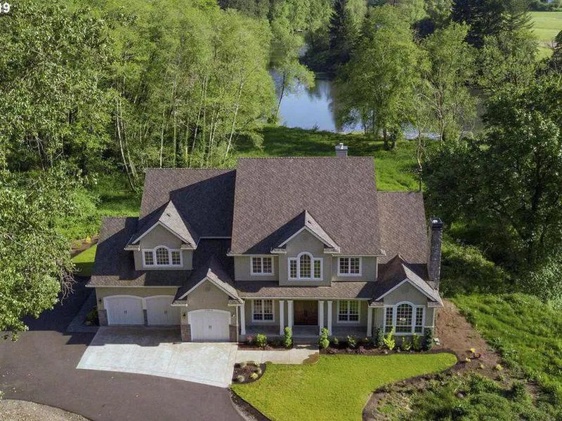 Special features: Riverfront house with three fireplaces and a huge two-story great room.