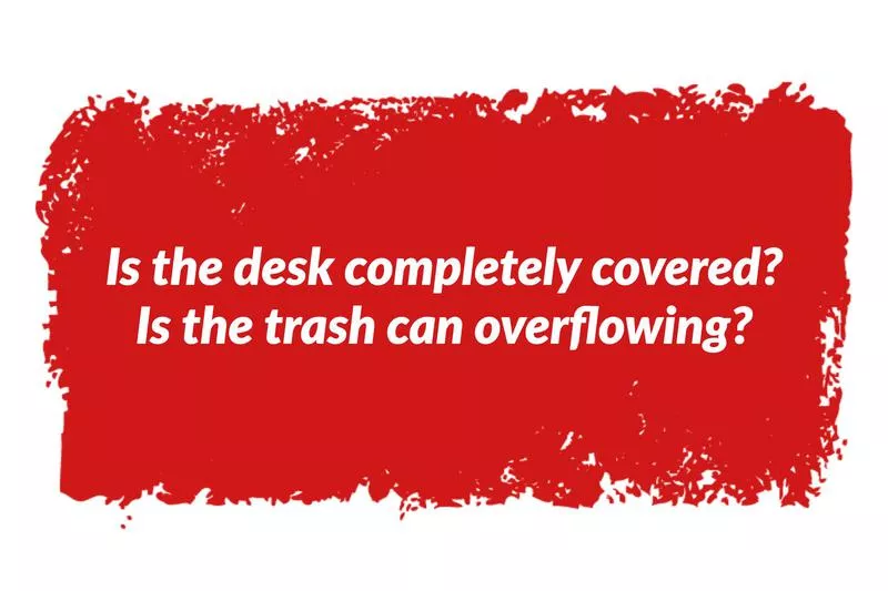 Look at the desk as well. If there are a few loose papers or a folder or two on the desk, that’s not an issue. But is the desk completely covered in papers? Is the trash can overflowing? These are signs that management isn’t taking themselves or the company seriously.