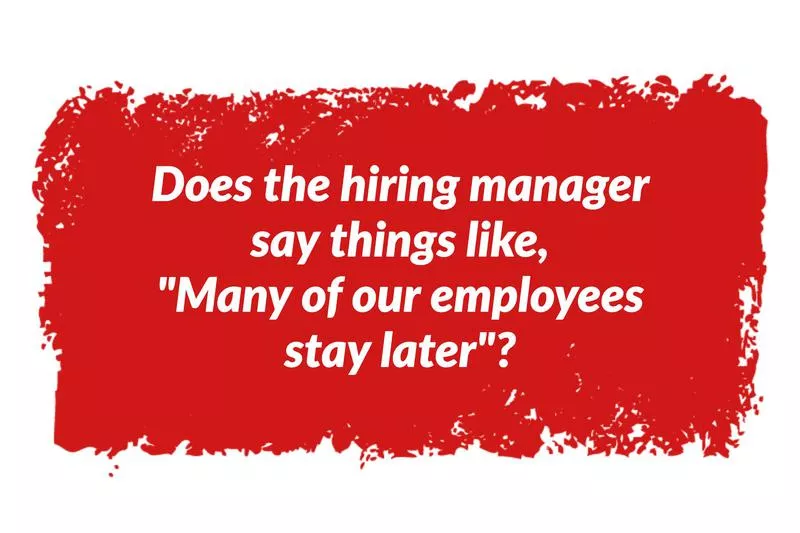 Will you be expected to be on call on evenings and weekends? Does the hiring manager say things like, “Many of our employees stay later” or “Don’t be surprised if you take some of your projects home with you”?