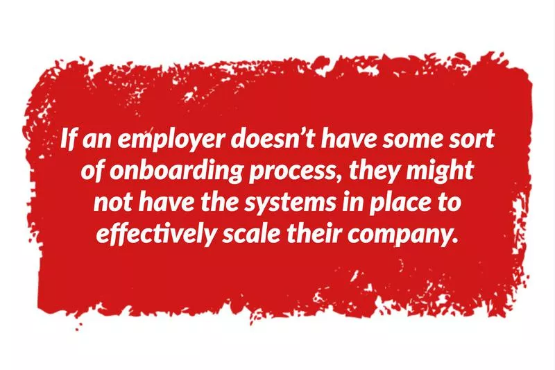 If an employer doesn’t have some sort of onboarding process, and expects you to just learn as you go, that might be a sign that they don’t have the systems in place to effectively scale their company and sustain their business over time.