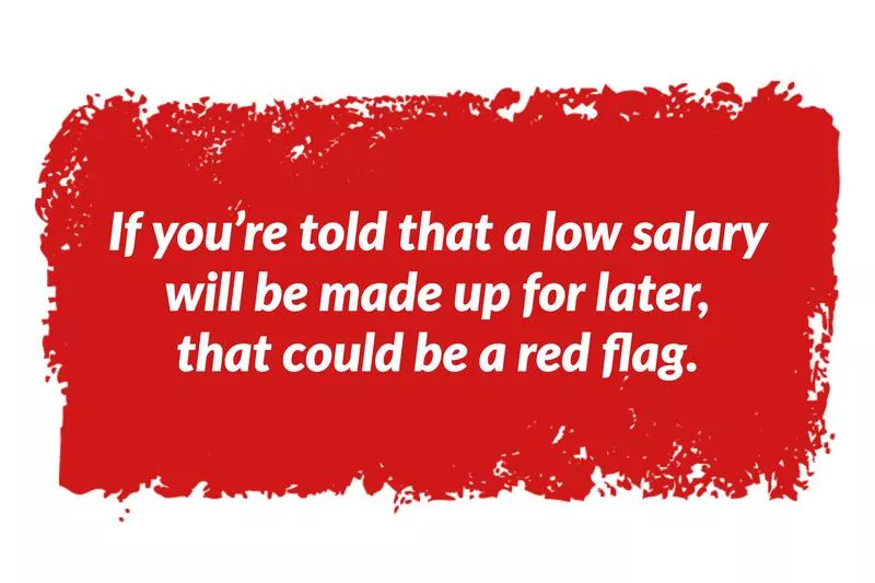 Any time you’re told that a low salary will be made up for later, in the form of huge bonuses, or the potential to make more money as the company grows, that could be a red flag.