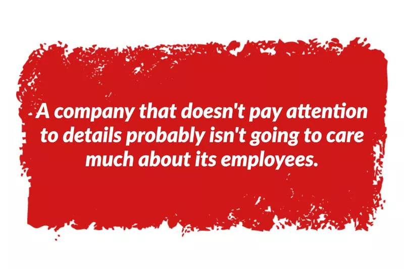 You’ve made an effort to appear put together. You’ve probably put on an appropriate outfit and done your hair. It’s one thing if you work for a scrappy startup or if you work in a creative or casual environment, where people are expected to be dressed down and a little disorganized. However, if you show up and the hiring manager looks completely disheveled, that could be a sign that they don’t have it together. And maybe the company doesn’t, either.