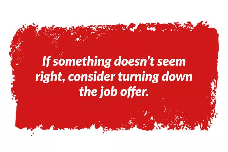 No matter the job title, salary or situation, if something doesn’t seem right, consider turning down the job offer. You might be surprised at how often a gut check can save you from ending up in a terrible job.