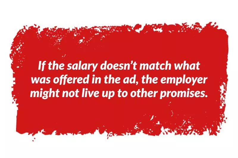 Watch out for companies that put a large emphasis on your earning potential, brushing off questions about current salary.
