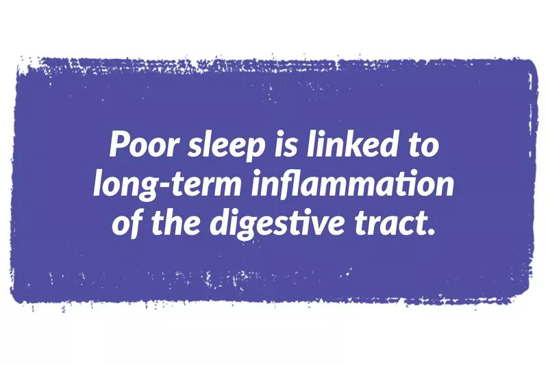 Sleep can have a major effect on inflammation in your body, with poor sleep linked to long-term inflammation of the digestive tract (inflammatory bowel diseases) and relapses in Crohn’s disease patients. Research has shown that people who get six hours or less of sleep a night have higher blood levels of inflammatory proteins than those who get more sleep.