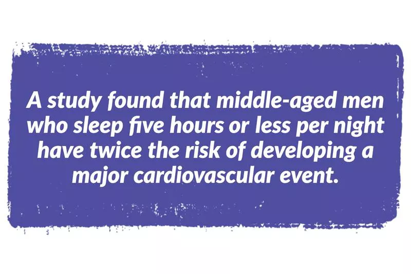 If you don’t get enough sleep, you might be putting your heart at risk. According to a study by the University of Gothenburg in Sweden, middle-aged men who sleep five hours or less per night have twice the risk of developing a major cardiovascular event during the following two decades than men who sleep between seven and eight hours.
