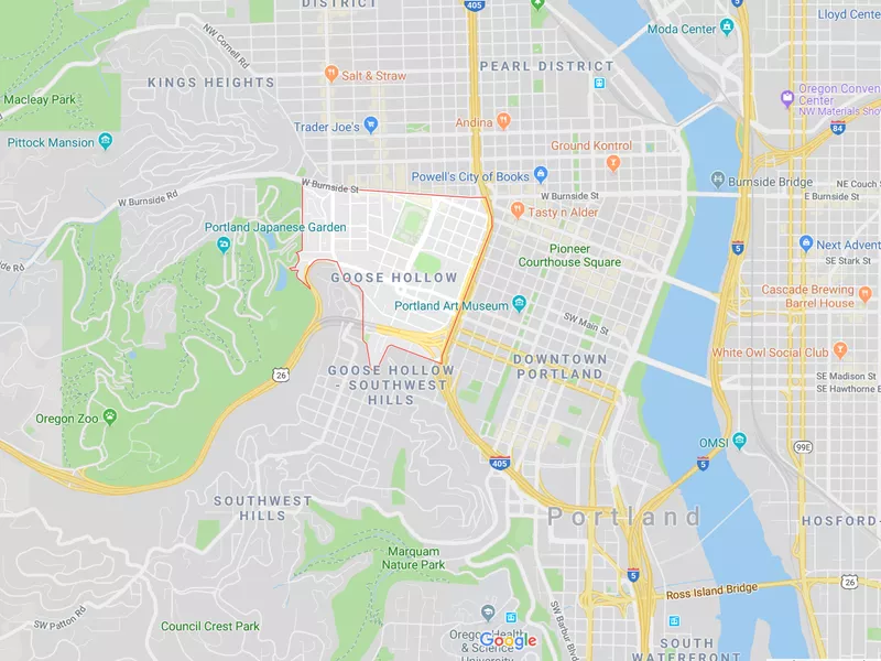 Real estate glimpse: Located adjacent to downtown Portland, Goose Hollow is now a pretty pricey spot. Tiny studio apartments can rent for over $1,000 a month, and the median listing price is $356,000, with almost all sales being for condos or apartments.