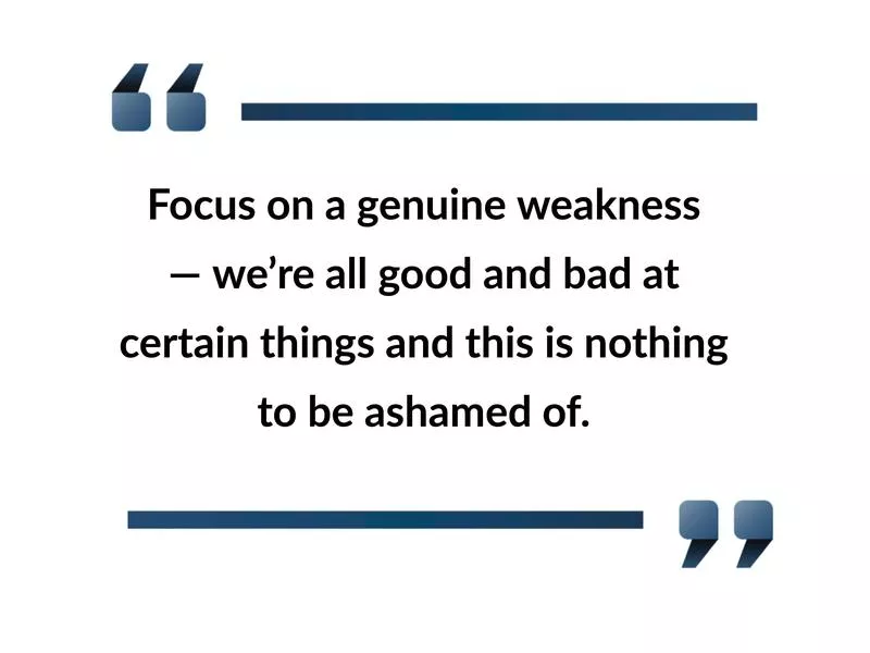 Instead, when answering this question, focus on a genuine weakness — we’re all good and bad at certain things and this is nothing to be ashamed of. Most importantly, emphasize how you are trying to improve that weakness."