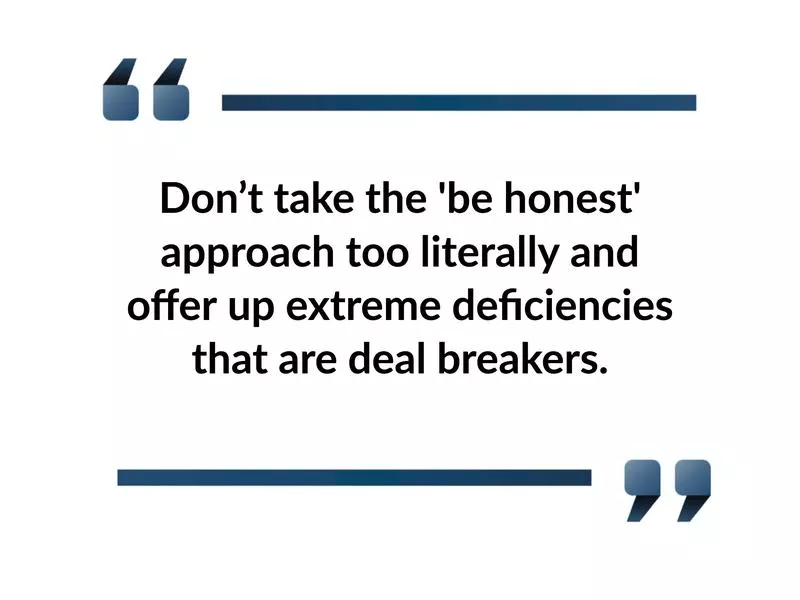 Human resources consultant Laura MacLeod said some candidates take the "be honest" approach too literally and offer up extreme deficiencies that are automatic deal breakers in an interview. She recalled a group interview she sat in on in which a candidate was asked about his biggest weakness.