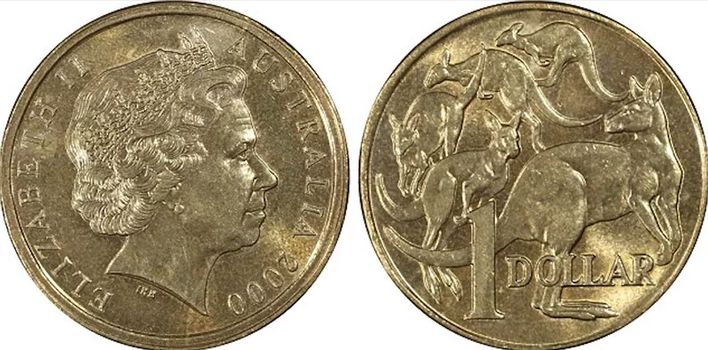 In 2000, there was a mix-up at the mint where the Mob of Roos dollar reverse was accidentally paired with the 10 cent queen’s head obverse.
